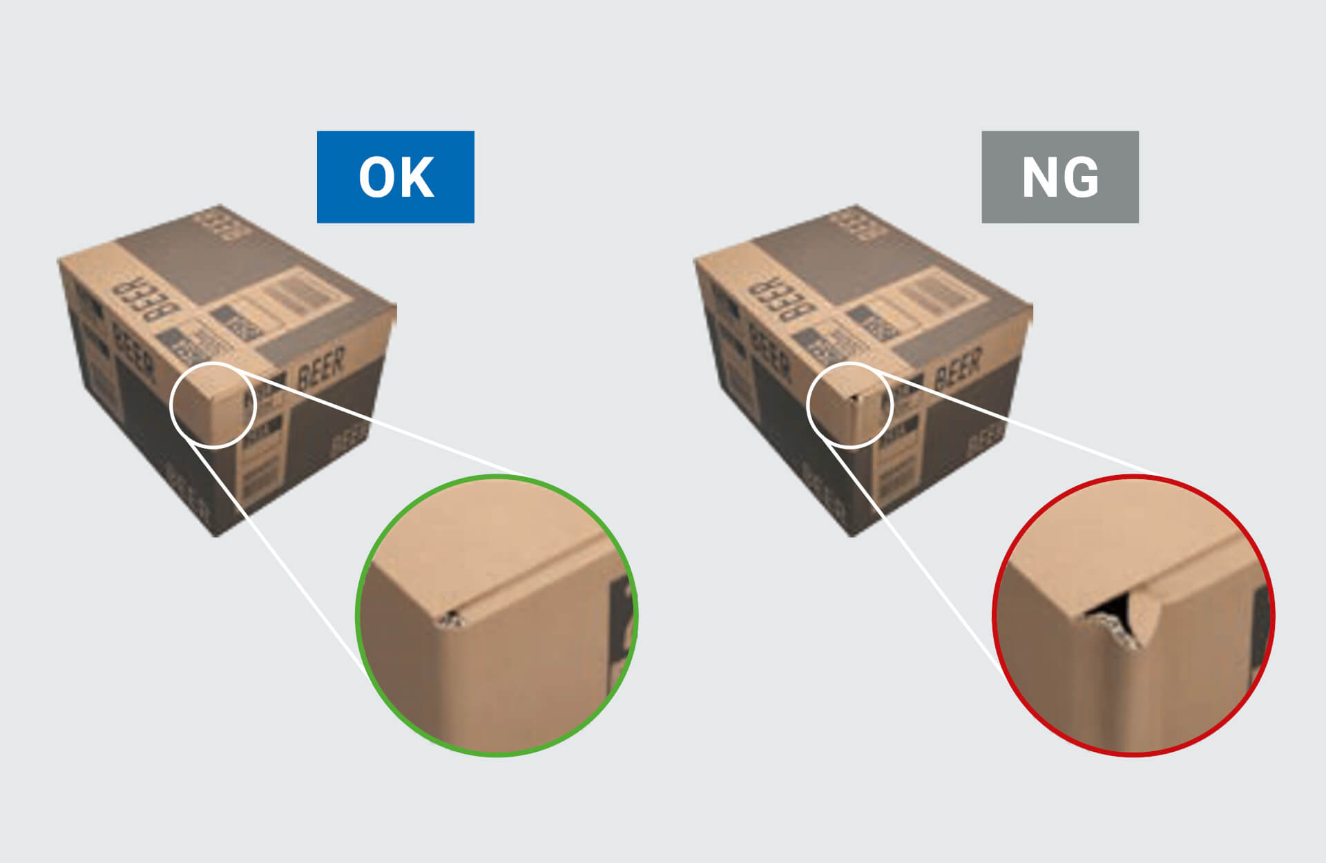 ❌ – A dent or tear is detected, which could compromise packaging integrity.